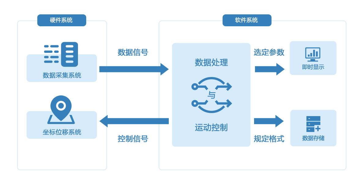 自主研发的全自动一体化气动流场测控系统,包括数据采集硬件,获取气动参后通过AD转换将数据型号送入数据处理软件系统,通过对压力、温度、湿度等参数的计算与分析,将测试结果(压力、速度、损失、负荷等参数)即时显示在软件界面,试验操作人员可以更直观的获取流场特征,提高了试验效率,同时也有利于对试验结果的正确性做出直接判断。相关的原始数据与求解获得的气动参数按照用户要求的固定格式进行存储,为后续的进一步数据处理与分析打下基础。在测试过程中,同时可以对坐标位移系统发出运动指令,将数据采集与运动控制有机结合,自动完成整个测量截面的流场测试。