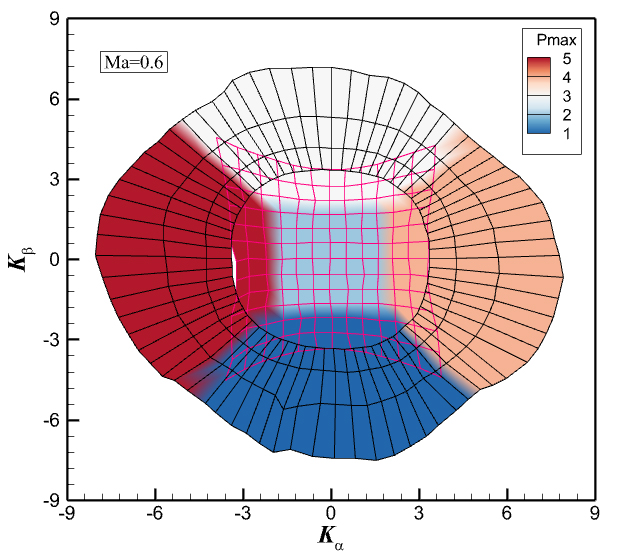 传统的五孔探针测试范围一般在±30度以内,为了实现对复杂流场(存在大气流角)的准确测量,自主开发出给予五孔探针的分区拓展插值方法,将五孔探针的插值范围拓展到45°以上,通过应用新的探针设计技术,有望将五孔探针的测量范围拓展至±60度。